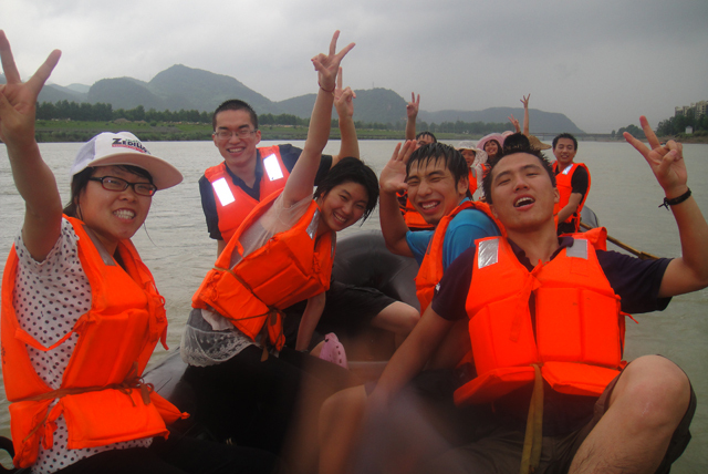 雖然當天天公不作美,但是完全不減我們賽爾人的激情,一路高歌,充滿了歡聲笑語。到達巴比松度假莊園欣賞完向日葵花海后,前往天目溪進行向往已久的漂流。漂流中大家被分成4小隊進行了水上作戰(zhàn)。