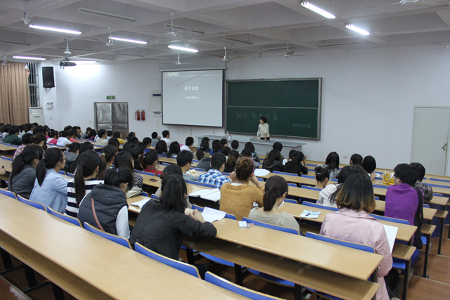 就業指導講座在工商學院的階梯教室內舉行,大一到大三學生均有參與。會上,賽爾集團市場部的全天云經理和人事部的葉青照分別對外貿的基本流程、外貿人員所需素質、集團概況和具體崗位要求進行了講解。學生們積極聽取并進行了熱烈的互動討論。會后學生們表示此次講座受益匪淺,希望日后賽爾集團多來學校與大家交流開展活動。