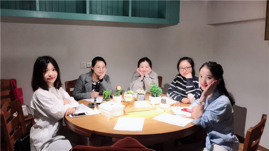 讀書日將要到來,在和風細雨的下午,我們在精致的安妮花園私廚坊開始了我們的讀書會活動。這是翻譯社今年的第一次活動,我們通過視頻連線的方式讓寧波與義烏的小伙伴相互自我介紹,剛好大家都是美少女,熱情又積極,氛圍很是活躍,一掃之前我們以為會很尷尬的想法!(PS:男性同事可以互相推薦加入額!)