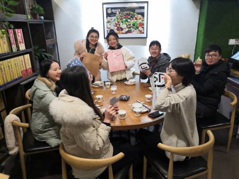 又是一年年底了,為了感謝大家的努力和慶祝今年超額完成目標(此處有掌聲!),我們安排了慶功宴,慶功地點定在了蛙二先生家。我們還策劃了一個小節目:交換禮物,每個人都用心準備了小禮物以及親手寫的祝福語,感覺特別溫暖。除此之外MARY還給EA組每人準備了一個驚喜——一套高大上的禮盒,謝謝MARY!