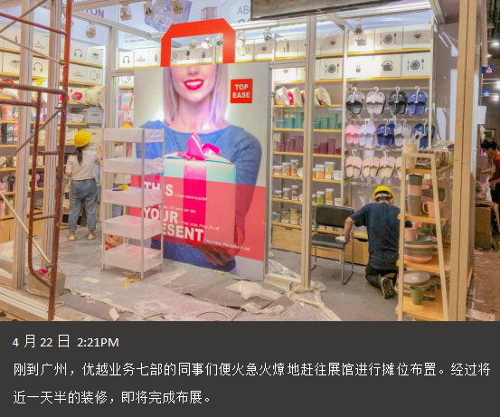 一年兩屆的廣交會是每一位賽爾人盡全力去打的兩場硬仗,從樣品討論開始,到選樣、打板、包裝設計、產品組裝、擺樣、貼條碼、打包寄樣,直至最后參展,每一個項目所花費的時間和精力大概也只有親身經歷的人能夠說出個中滋味。