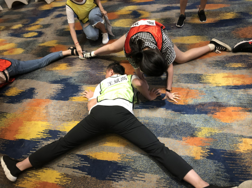 最終我們迎來了名牌大戰(zhàn),每組6人分為2組三三對戰(zhàn)車輪對抗指壓板單腳互推項目。原本綠隊和藍隊之前獲得很大的優(yōu)勢,沒想到激烈對決后紅隊逆襲成為冠軍。