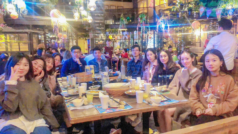 晚上7點(diǎn),大家在胡桃里餐廳進(jìn)行首次聚餐。餐廳里有歌手駐唱,大家一邊吃著飯一邊欣賞音樂,有種特別放松的感覺。