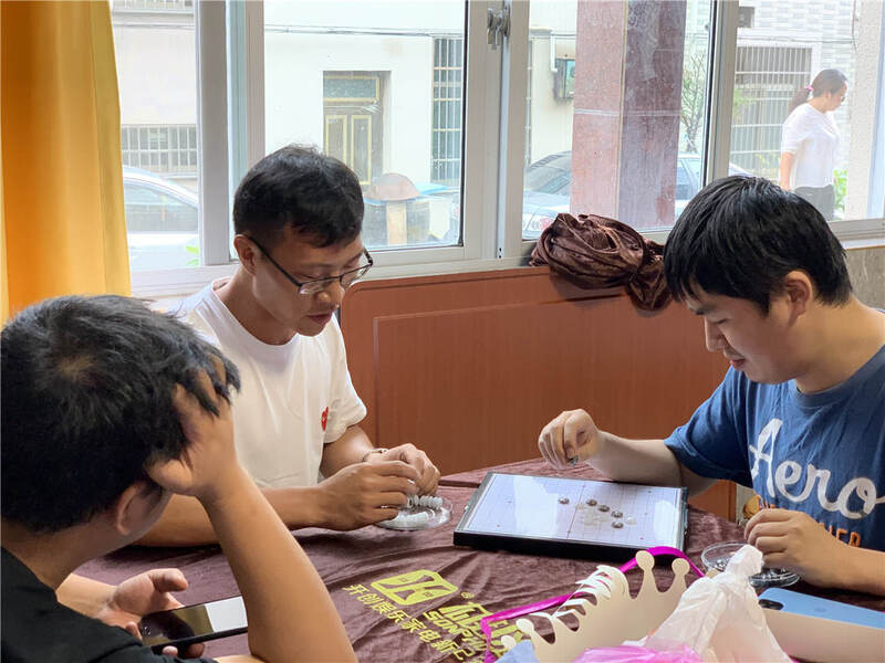 短暫休整后,大家各自組隊(duì)開(kāi)始戰(zhàn)斗,有 “國(guó)粹”比賽,有五子棋、象棋等棋類(lèi)項(xiàng)目,有“力爭(zhēng)上游”“環(huán)環(huán)相扣”等新式比賽,期間還穿插了“畫(huà)畫(huà)傳遞猜詞”“害你在心口難開(kāi)”“交換名字”等趣味游戲,好不熱鬧。