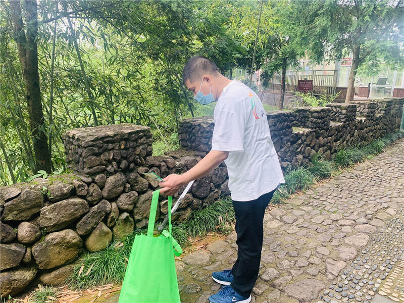 第二天,睡到自然醒的我們開(kāi)啟了團(tuán)建的隱藏副本——山野清風(fēng)。大家?guī)е约旱膴A子和袋子,將被人隨意丟棄的煙頭、煙盒、塑料瓶、包裝袋等垃圾收入“囊”中,在進(jìn)行爬山這項(xiàng)有氧運(yùn)動(dòng)的同時(shí)將環(huán)保進(jìn)行到底,既呼吸了新鮮空氣,又保護(hù)了磐安美麗的風(fēng)景。