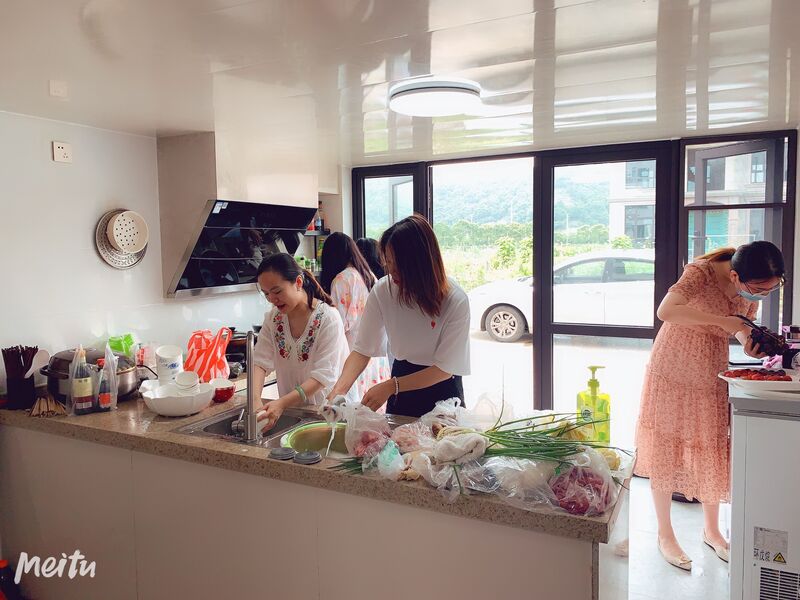 一大早四位工作人員便先行前往當(dāng)?shù)夭耸袌?chǎng)選購(gòu)火鍋食材,剩余人員也隨后陸續(xù)出發(fā)前往目的地。全員到齊后,大家便開始進(jìn)行準(zhǔn)備工作,刷盤、洗菜、切菜,大家各司其職,當(dāng)然也不乏平常在家不干家務(wù)活的“勞動(dòng)人民”制造了點(diǎn)小插曲,氣氛十分歡快。