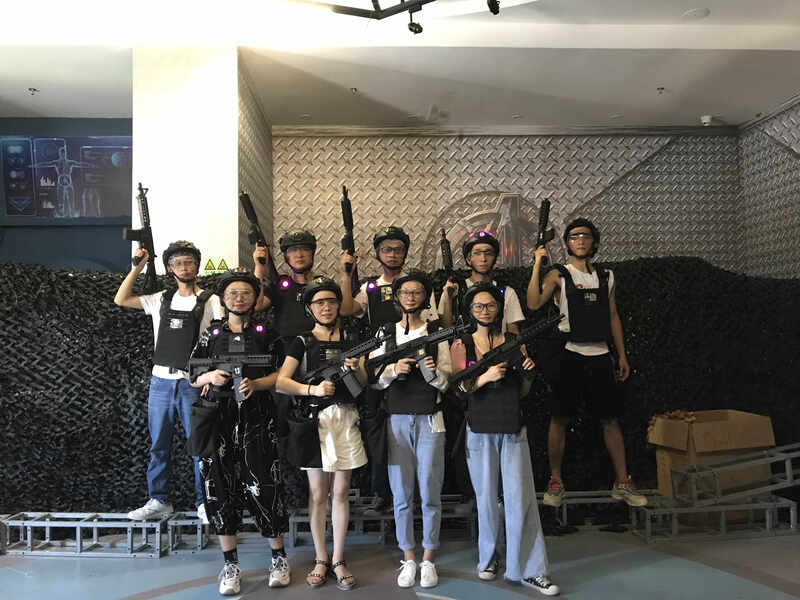 下午,一行人又來到三樓的精英戰場真人射擊俱樂部,穿上迷彩服,拿起模擬槍互相射擊,激烈無比。