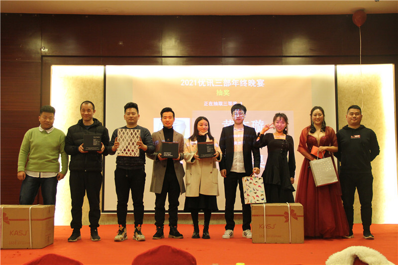 正經的年終會議結束后,我們迎來了輕松有趣的晚宴,每個小組都準備了精彩紛呈的節目。有采購們帶來的帥氣開場舞,有麥霸二人組帶來的情歌對唱,有爆笑全場的情景劇和小品,更有整齊劃一的“小人舞”和惟妙惟肖的配音表演。最讓人難忘的當然是游戲和抽獎環節,那獎品可不是一般的豐厚,有華為平板、現金大紅包、洗衣機、跑步機……恭喜中獎的幸運兒們!