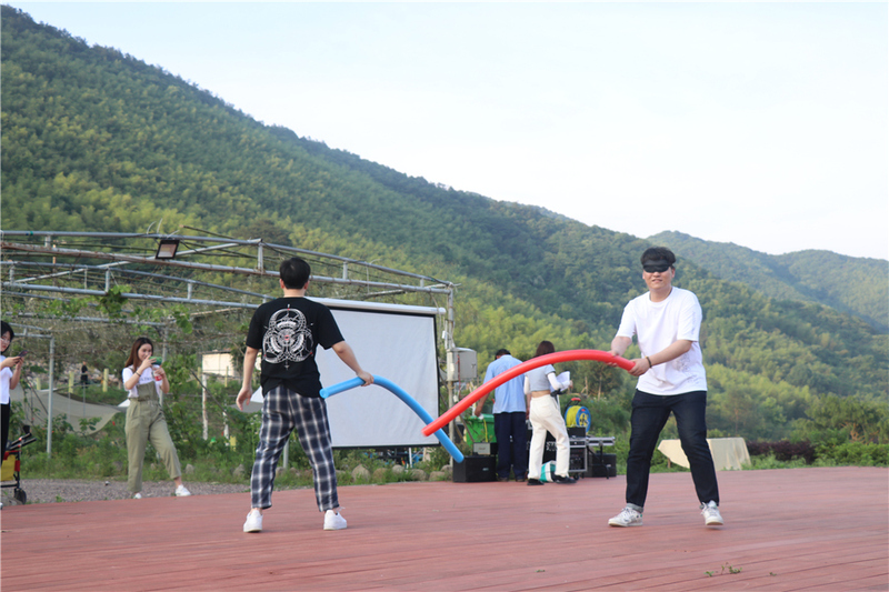 一進(jìn)入雪岙村,36度白晃晃的陽光照得路邊的樹木都耷拉著腦袋。下午2點,一輛輛車子停靠在龍觀莊園的附近,大廳內(nèi)一條正在小憩的旺財聽到了門外傳來一陣陣的歡笑聲,無奈之下睜開了雙眼,將腦袋探向門外心想是誰破壞了剛才的美夢。原來今天是60位貔貅小可愛們相約開露營party的日子。