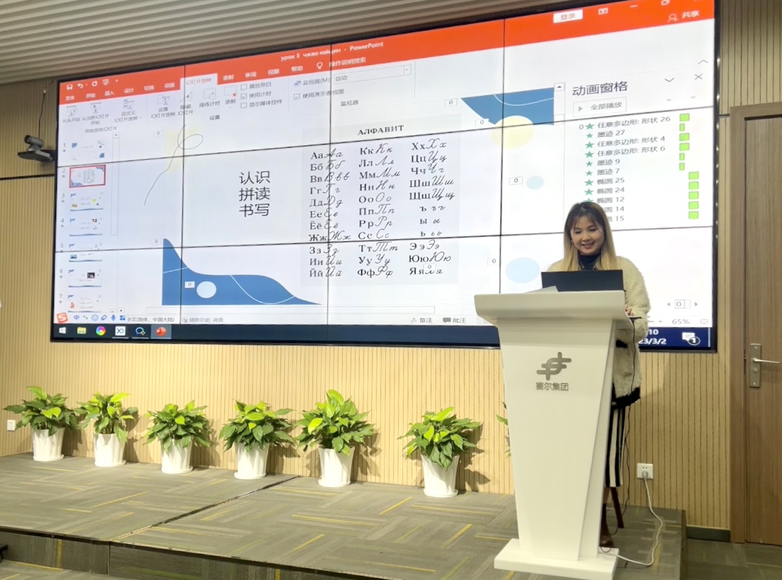 最初,大家學習33個俄語字母的音標和發(fā)音,并通過聽說讀寫來鞏固,緊接著是單詞和一些日常用語的學習。老師每節(jié)課都會帶領我們鞏固上節(jié)課的知識點,然后開始學習新的知識,也會通過視頻、音頻等方式讓我們更加方便地去領悟知識。